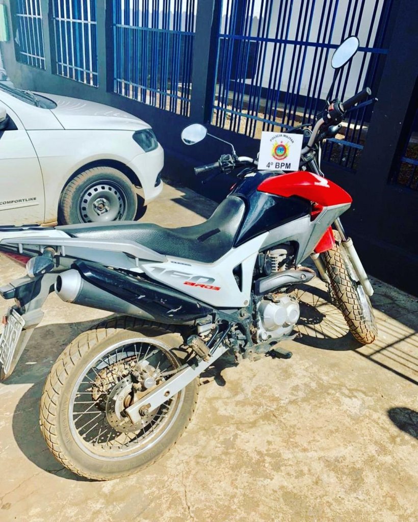 A guarnição realizava patrulhamento quando se deparou com o veículo em alta velocidade. Os militares solicitaram a parada pelo condutor, que empreendeu fuga. Após acompanhamento, os policiais interceptaram o indivíduo, foi realizada a busca pessoal e posteriormente a consulta do veículo no sistema, e foi constatado que a motocicleta era roubada.