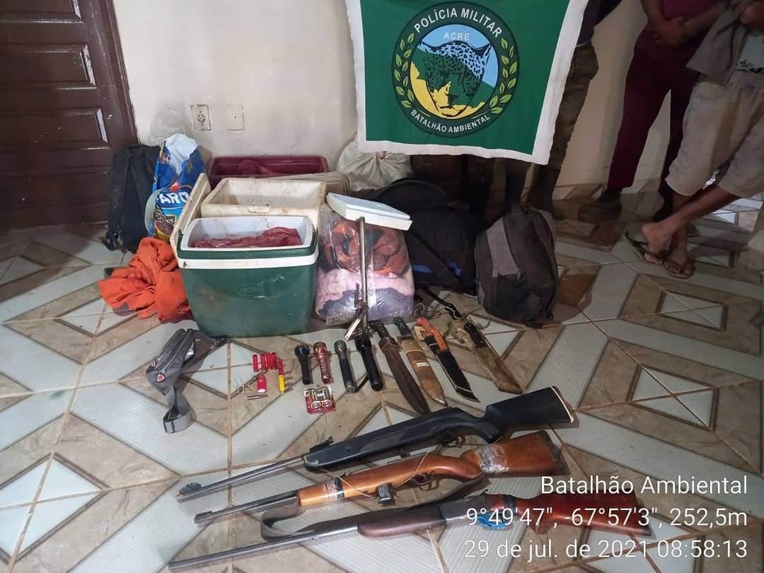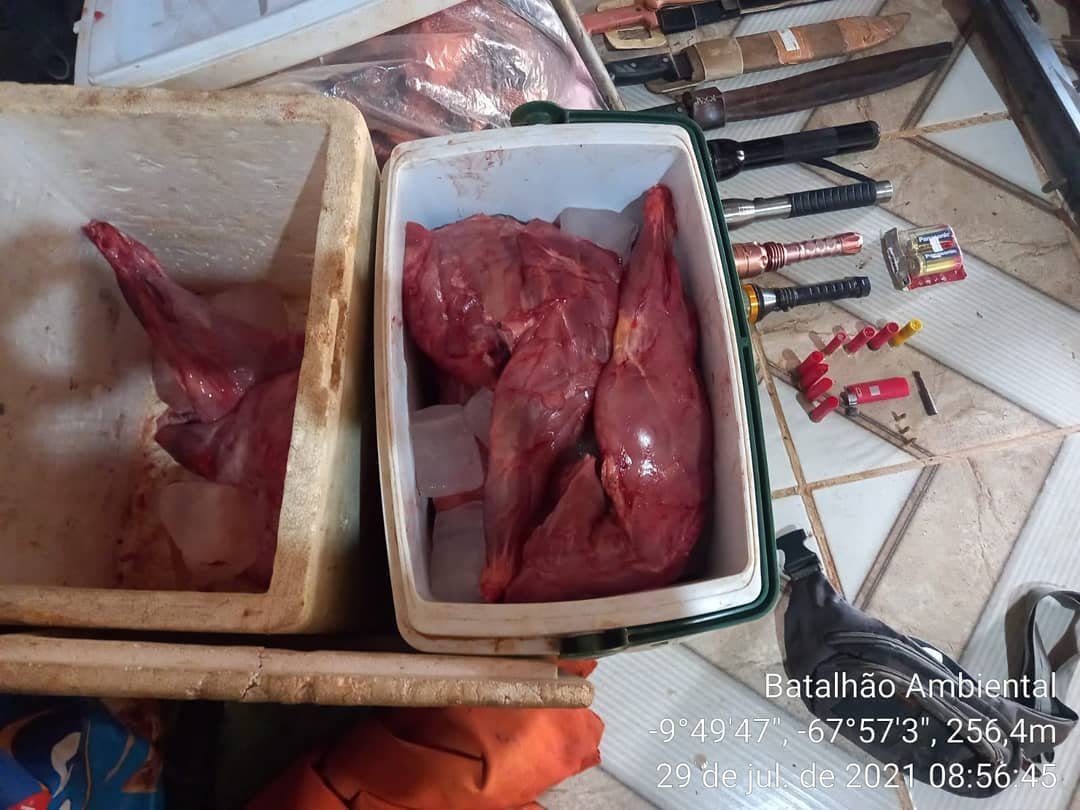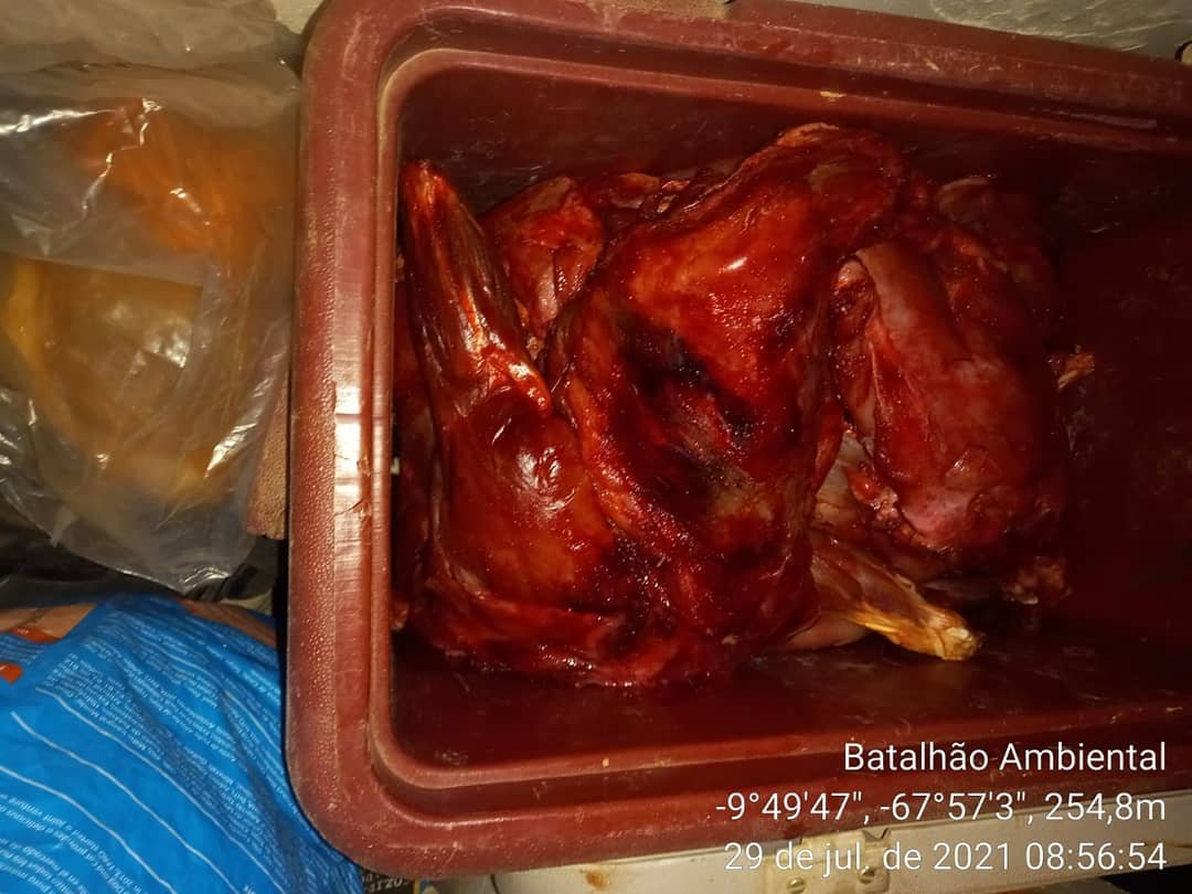 Os autores e instrumentos do delito foram apresentados na Delegacia de Polícia do Bujari e a carne apreendida foi encaminhada ao Centro de Triagem de Animais Silvestres (CETAS), do IBAMA.