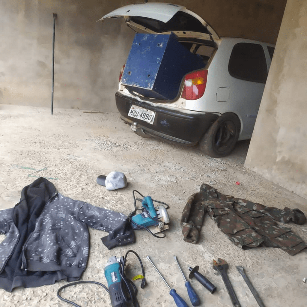 Após intenso trabalho investigativo, a equipe logrou êxito na identificação e detenção dos envolvidos, bem como na apreensão dos objetos utilizados no crime (carro e ferramentas), provas indeléveis que subsidiarão inquérito policial.