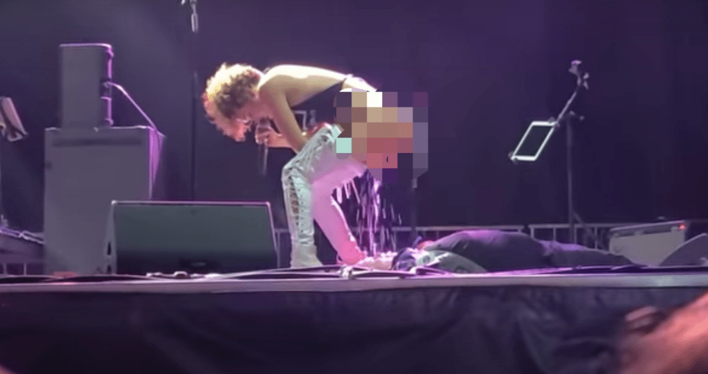 O momento inusitado aconteceu na sexta-feira (12), durante a apresentação da banda no festival “Bem-vindo ao Rockville, em Daytona Beack, Flórida, nos Estados Unidos.