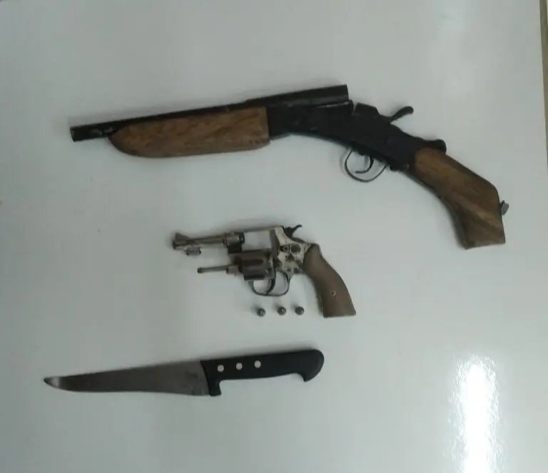 Uma vez localizado o sítio onde as vítimas eram feitas reféns, num Bairro de Rio Branco-AC, os policiais civis realizaram o adestramento tático e capturaram os 05 (cinco) criminosos que haviam praticado o roubo ainda na posse de armas de fogo – uma escopeta e um revólver calibre 32 – e uma faca usadas para cometer o crime.