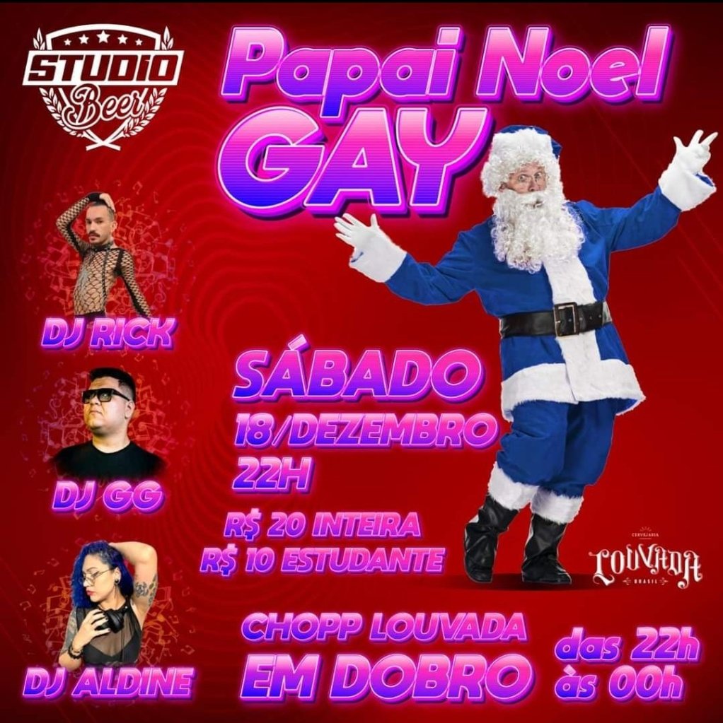 O evento acontece no próximo sábado, 18, no Studio Beer, com apresentação de DJs e, é claro, do Papai Noel Gay.
