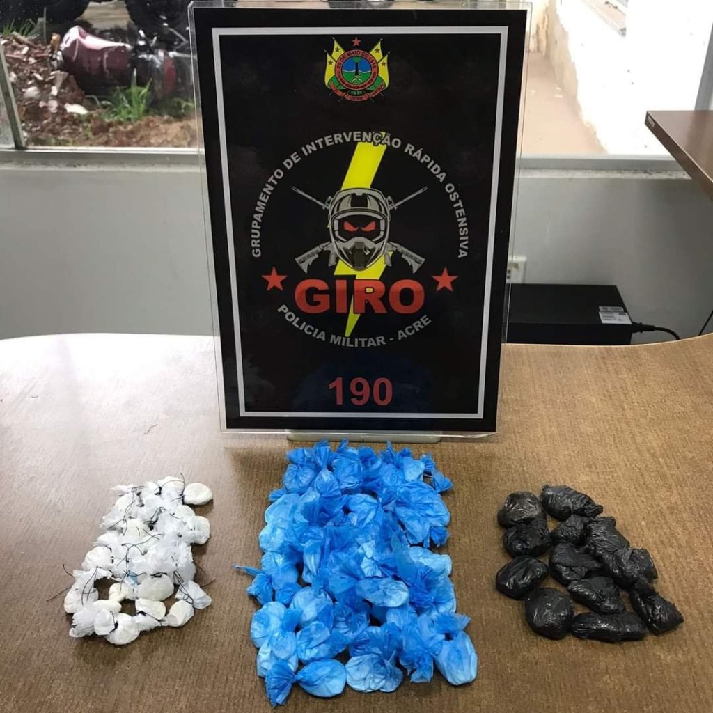 Policiais militares do Grupo de Intervenção Rápida Ostensiva (GIRO) apreenderam na tarde deste domingo, 19, uma adolescente de 16 anos, pelo crime de tráfico de drogas. A ação ocorreu durante patrulhamento preventivo no bairro Ilson Ribeiro, região do Calafate, em Rio Branco.