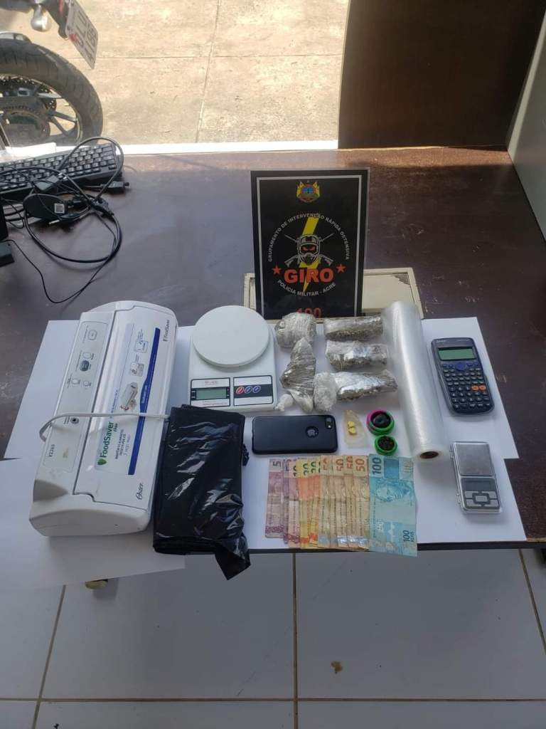 Militares do Grupo de Intervenção Rápida e Ostensiva (GIRO), da Polícia Militar do Acre (PMAC), apreenderam durante o serviço de quinta-feira, 30 e desta sexta-feira, 31, drogas e moeda falsa. As ocorrências aconteceram em locais distintos da capital. Duas pessoas foram presas.