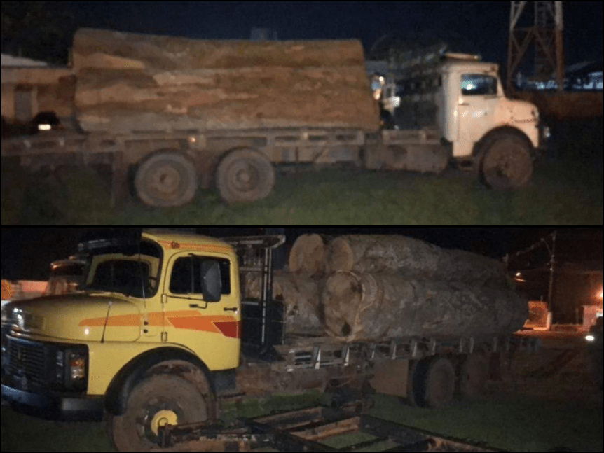 A Guarnição se encontrava em patrulhamento quando visualizou dois caminhões transportando madeira. Os dois transportavam aparentemente Cumaru Ferro, em toras de madeira.