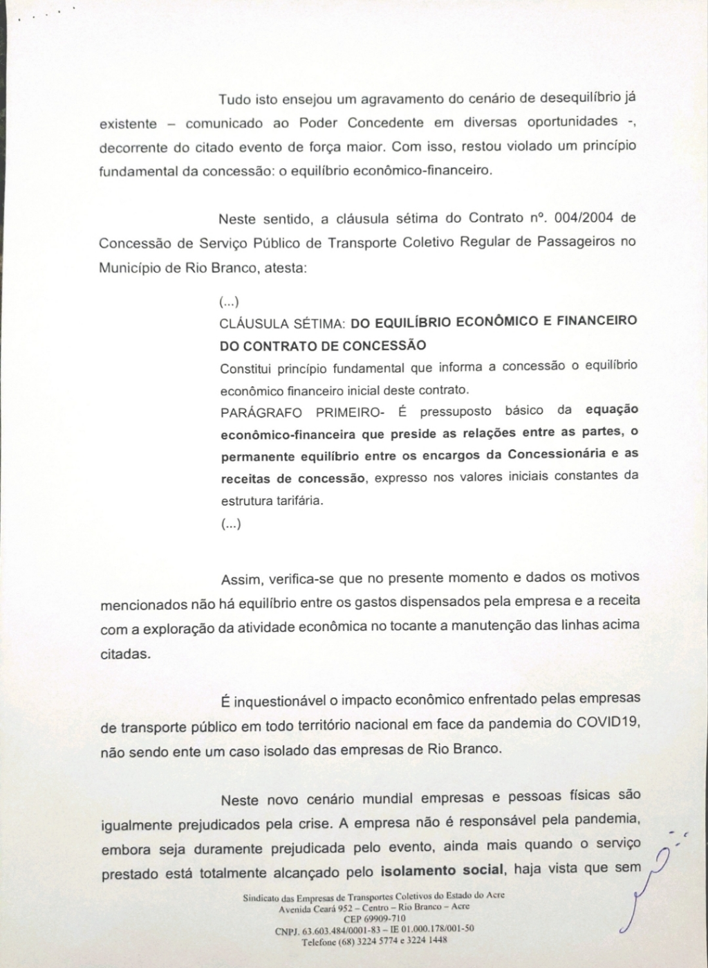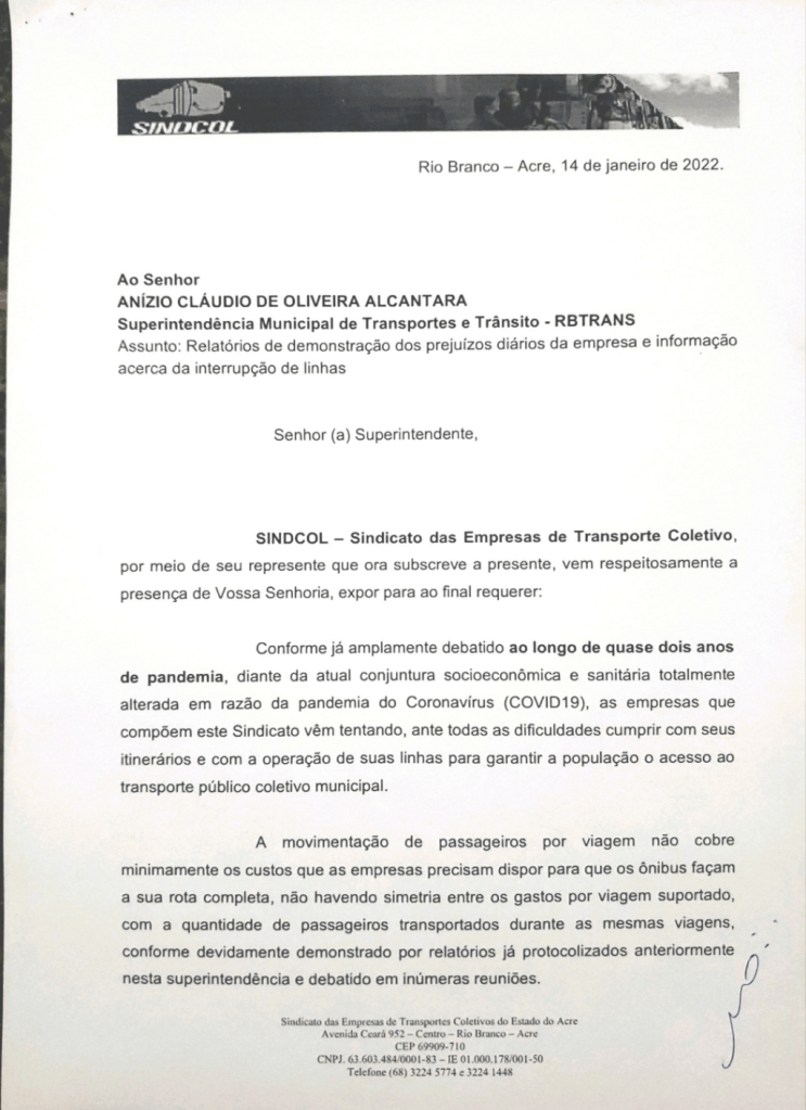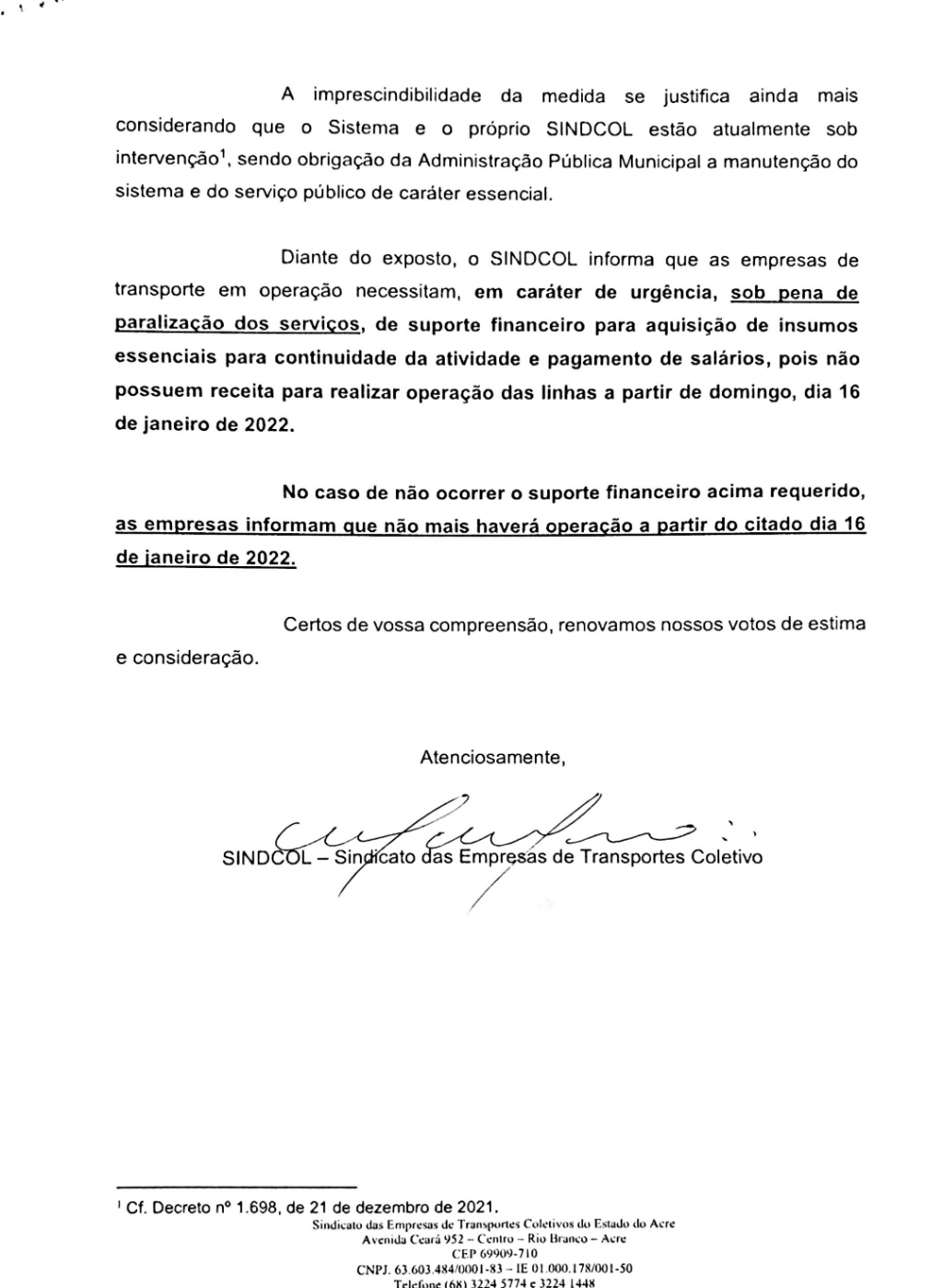 Um comunicado do Consórcio Via Verde e São Judas Tadeu, que começou a circular em grupos de WhatsApp, na noite deste sábado (15), informa que os ônibus não irão circular em nenhuma linha neste domingo (16), na cidade de Rio Branco.