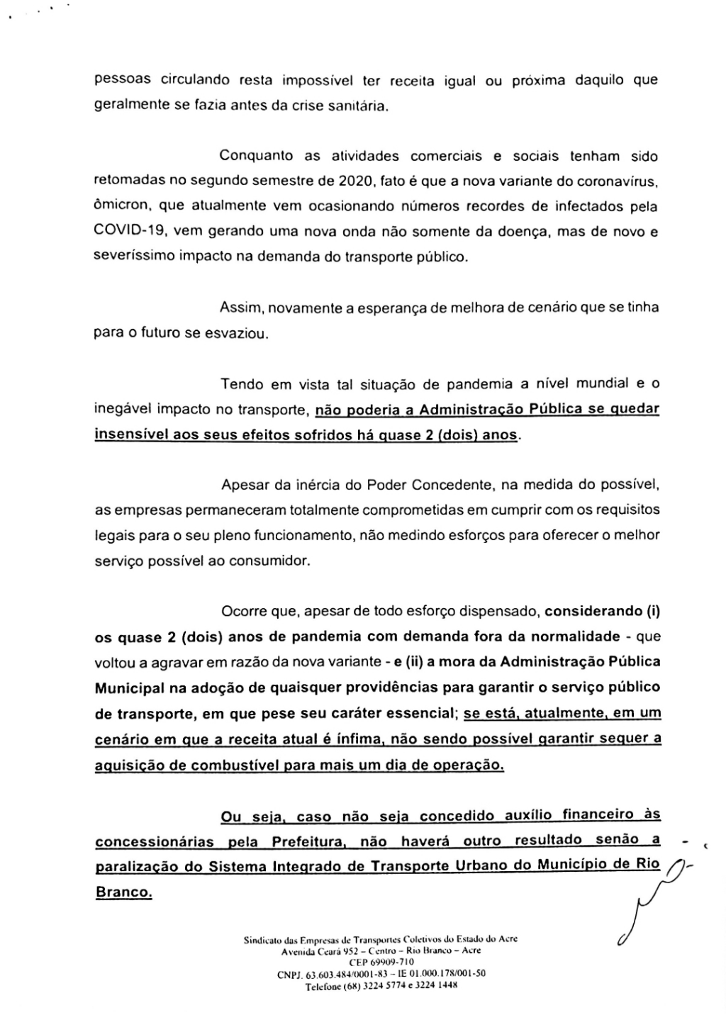 O motivo, segundo as empresas, é que não obtiveram resposta da Prefeitura de Rio Branco, com relação a possível compra de óleo. Sem combustível, não existe possibilidade de operar.