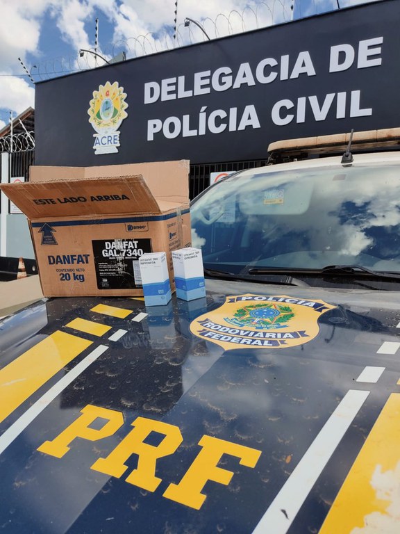 Foram apreendidos, na manhã de ontem (24), 231 frascos de medicamentos de registro. O material foi apreendido durante abordagem no km 97 da BR 317. O motorista foi encaminhado para a Polícia Civil da cidade pelo crime de falsificação, corrupção, adulteração ou alteração de produto destinado a fins terapêuticos ou medicinais.