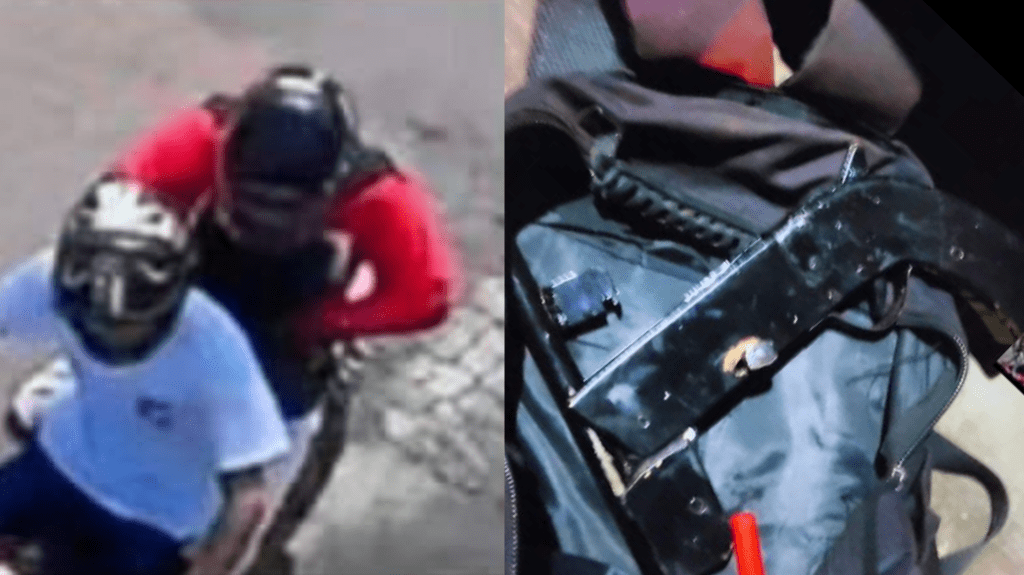 Com as informações e características, as guarnições localizaram os suspeitos transitando em uma motocicleta, e durante a abordagem encontraram com eles uma arma de fogo artesanal, de calibre 32 municiada.