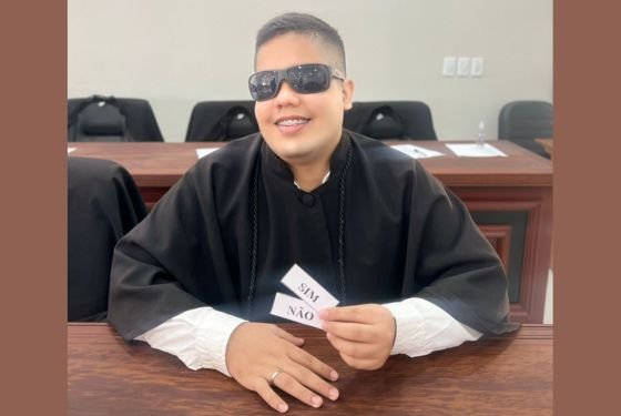 Bruno Feliciano, de 22 anos, é morador de Cruzeiro do Sul, segunda maior cidade do Acre, e deficiente visual desde o nascimento. No início de julho vivenciou uma experiência exitosa, na Sala das Sessões do Tribunal do Júri da Cidade da Justiça de Cruzeiro do Sul, quando foi sorteado para compor o Conselho de Sentença para julgamento de um réu por tentativa de homicídio.