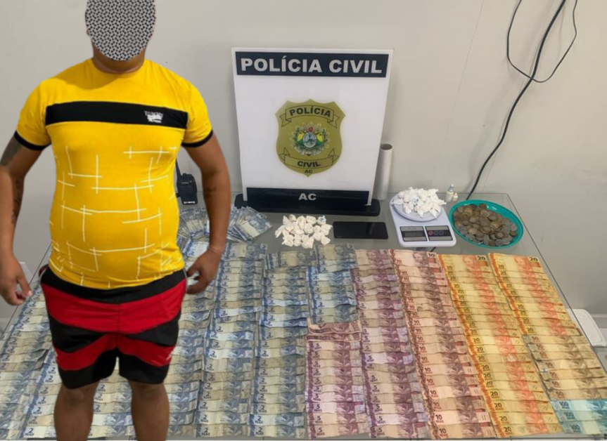 Na ocasião foi localizado e apreendido na residência do autor certa quantidade de entorpecente do tipo cocaína e também oxidado de cocaína, motivo pelo qual o homem recebeu voz de prisão, sendo conduzido à Delegacia de polícia civil, onde foi apresentado em perfeitas condições físicas.