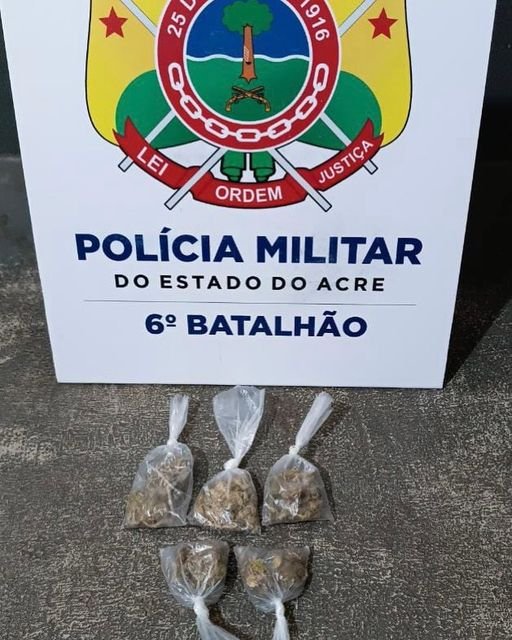 Durante a busca pessoal foi encontrado em sua posse cinco pacotes pequenos de substância de entorpecentes que, segundo relatou o autor, seria maconha.