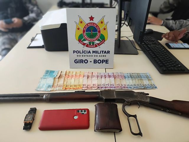 A equipe de GIRO, em patrulhamento na região central de Rio Branco, foi informada por populares que um homem estava armado e ameaçando pessoas próximo ao terminal urbano. Com as características, a equipe se deslocou ao local e realizou a abordagem, oportunidade em que o agente assumiu estar portando uma arma de fogo e que ela estaria em seu veículo. Diante disso, foi realizada a busca veicular e confirmada a afirmação, se tratando de uma carabina .44.
