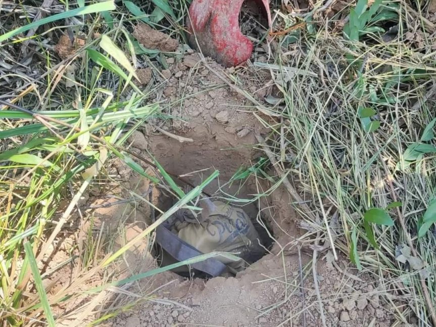 Em conversa com os militares, o homem apontou onde estava o restante da droga, que estaria enterrada na região de mata, sendo necessário a guarnição cavar um buraco no local em que se encontrava a droga.