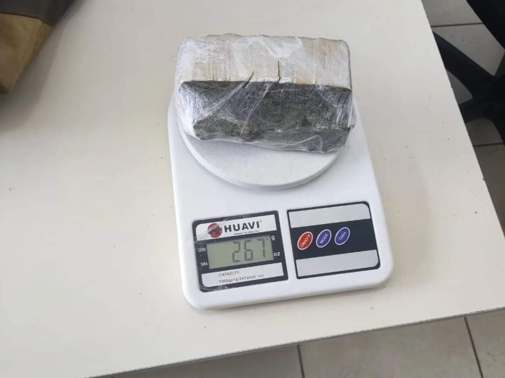 No total foram apreendidos 237 trouxinhas de maconha, 21 de cocaína e uma barra de maconha pesando 267 gramas. Uma Equipe da Companhia de Policiamento com Cães (CPCães) foi acionada ao local e fez a varredura no terreno, não sendo encontrada mais drogas.