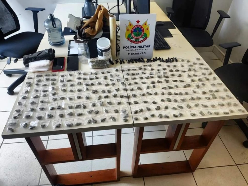 Na manhã desta sexta-feira, 11, uma guarnição do 1° Batalhão de Polícia Militar (1° BPM) apreendeu maconha e cocaína, no bairro Calafate em Rio Branco. Um homem de 42 anos foi preso no local por tráfico de drogas.