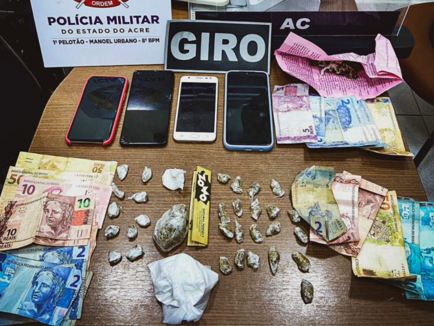Com o quinteto, os policiais apreenderam quatro celulares, certa quantia em dinheiro e mais de 30 trouxinhas de maconha.