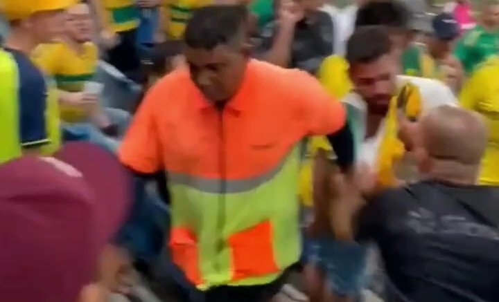 Em certo momento que subia as escadas, um torcedor do Dourado agrediu puxando a camisa dele. Simultaneamente, as outras pessoas ao redor começaram a xingar.