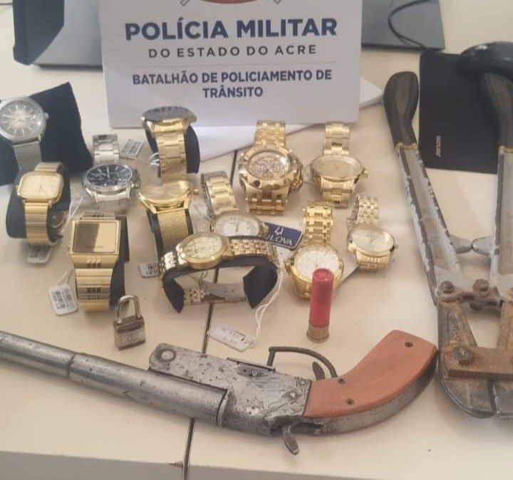 Policiais militares do Batalhão de Policiamento de Trânsito (Bptran), prenderam em flagrante um homem suspeito de roubar uma joalheria na região do centro de Rio Branco, o fato aconteceu na manhã de quarta-feira, 23.