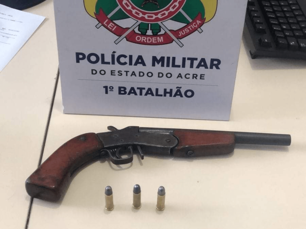 A guarnição policial retornou e ao se aproximarem do suspeito, ele, de imediato informou que estava armado. Os policiais fizeram a abordagem e encontraram o armamento de fabricação caseira.