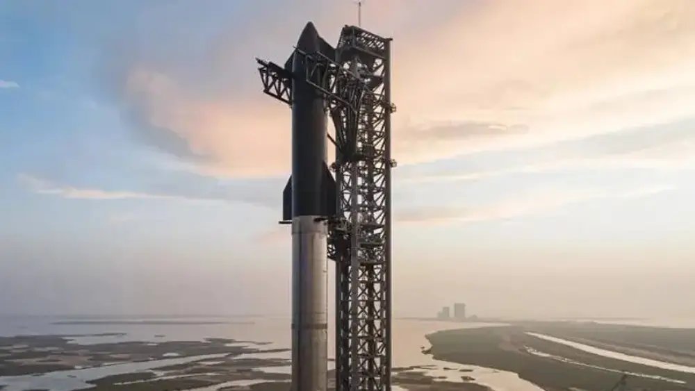O Starship tem 120 metros de altura e é composto por duas seções: o estágio de propulsão Super Heavy e seus 33 motores, e acima está a nave espacial propriamente dita, que por extensão dá nome ao foguete como um todo.