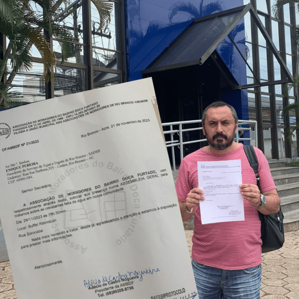 Associação de Moradores do bairro Doca Furtado, na pessoa do presidente Adecio de Castro, protocolaram um ofício junto ao SAERB, responsável pelo Serviço de Água e Esgoto na Capital, convocando o diretor presidente Enoque Pereira, para uma reunião com os moradores, a fim de esclarecer e dar uma resolutividade ao problema da falta d’agua na comunidade.