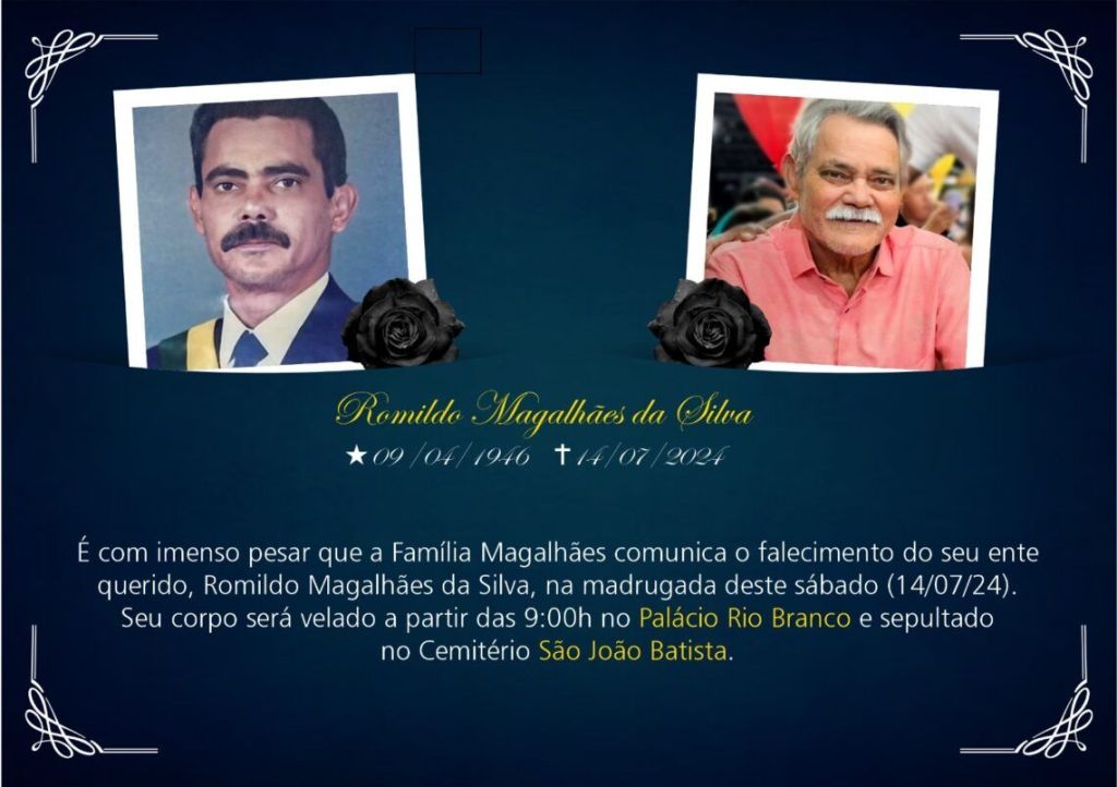 Faleceu na madrugada deste domingo 14/07 o Ex-Governador do Acre Romildo Magalhães aos 78 anos.
