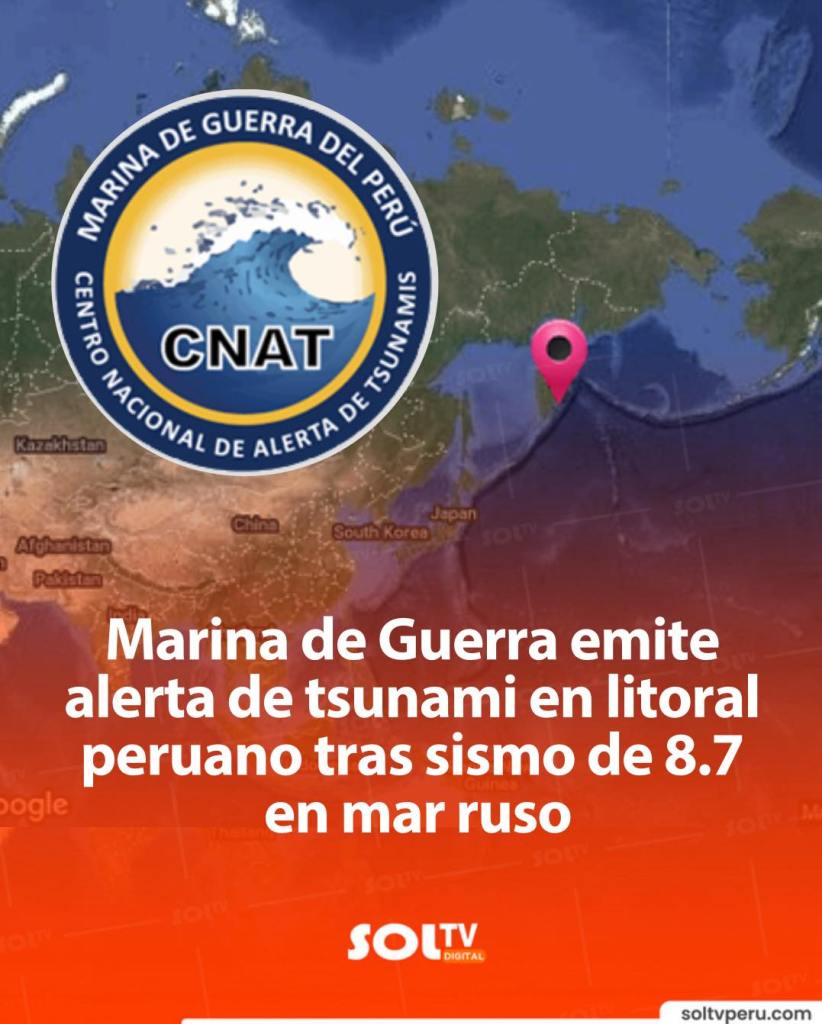Um terremoto de magnitude 8.7 abalou a Península de Kamchatka na Rússia nesta terça-feira, 29, gerando alertas de tsunami em todo o Pacífico, incluindo a costa peruana. O evento ocorreu às 18:24h (hora local na Rússia), com epicentro 133 km a sudeste de Petropavlovsk-Kamchatsky e uma profundidade de 74 km, segundo a USGS e organizações internacionais.